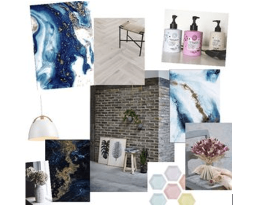Vi vil gerne have lyse sildebensgulv med primært hvide vægge, på nær en væg, den skal være helt bar og vise kun mursten. Vi elsker pastelfarver, så dem skal der selvfølgelig også en masse af, bl.a. kunne vi godt tænke os at hårbørsterne er enten pastel gule eller lilla, samt alle shampooflasker, balsamflasker osv. Så skal der selvfølgelig være vaskepladser, siddepladser, et stinkskab og så vil vi gerne have et par stole som kunderne kan sidde på mens de venter. Udover det skal der være et kasseapparat og en stumtjener som kunderne kan hænge sit overtøj på. Derudover vil vi gerne have nogle tørrede blomster rundt omkring, men i rolige farver. Vi kunne godt tænke os nogle gulv til loft vinduer, så vi får så meget naturligt lys ind som muligt.